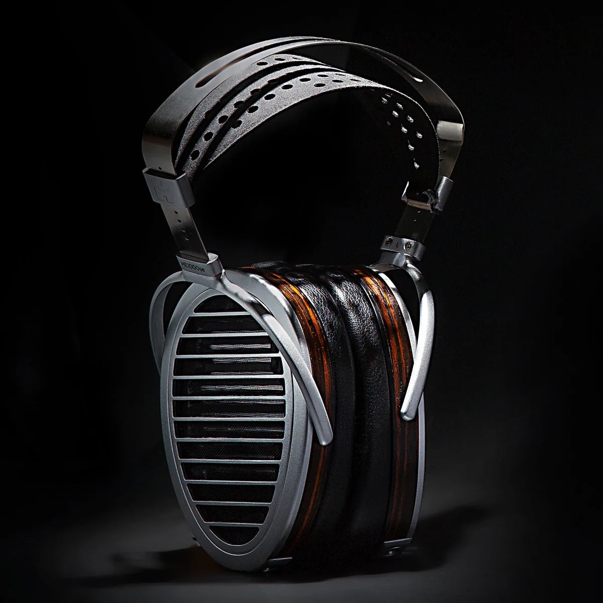 Optisch differenziert sich der HE1000se durch Makassar-Ebenholz-Furnier an den Ohrmuscheln und ein schwarzes Kopfband von früheren HE1000-Varianten. Die Kombination aus Metall- und Holzkomponenten vermittelt eine hochwertige, handwerkliche Anmutung.